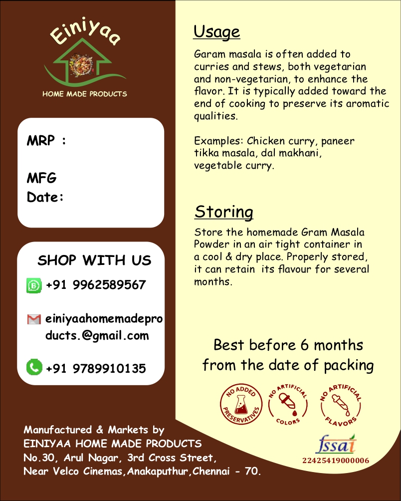 Store the homemade Garam Masala Powder in an air-tight container in a cool & dry place. Properly stored, it can retain its flavour for several months.