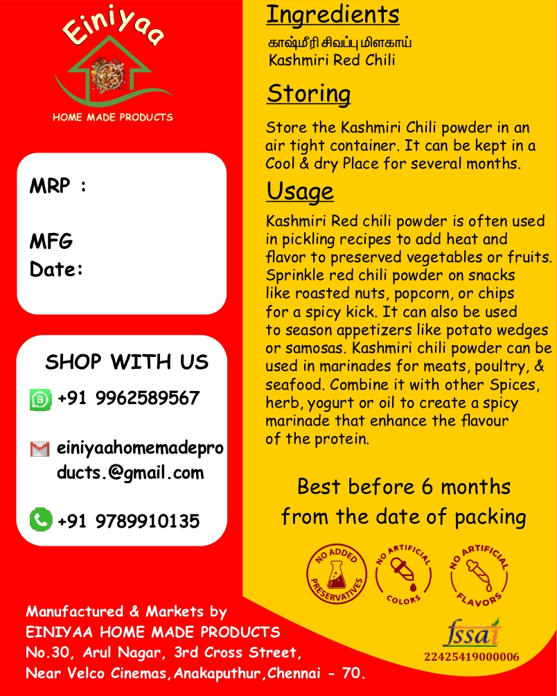 Kashmiri Red Chili Powder (காஷ்மீரி சிவப்பு மிளகாய்)